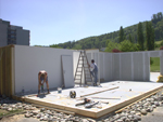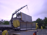Chronologischer Abbau eines Pavillion in Zurzach. Sämtliche Teile wurden so demontiert und in den LKW geladen, dass in Ungarn in umgekehrter Reihenfolge ausgeladen und aufgebaut werden konnte. Die Abbauarbeiten dauerten zwei Wochen. Während den Abbauarbeiten wurde in Ungarn bereits das Fundament gegossen. |